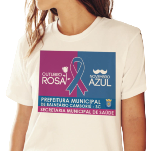 Camiseta Especial Fio Penteado 30 - Outubro Rosa/Novembro Azul Brinde ideal para campanhas de conscientização nos municipios Personalizável com o logo e descrição do município Composição: fio 30/1 penteado, 100% algodão, 160 g/m2Tamanhos: P-M-G-GG